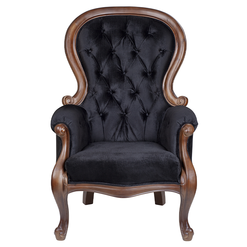 Кресло с мягкой обивкой из черного велюра на 4-х деревянных ножках Evelyn Classical Armchair