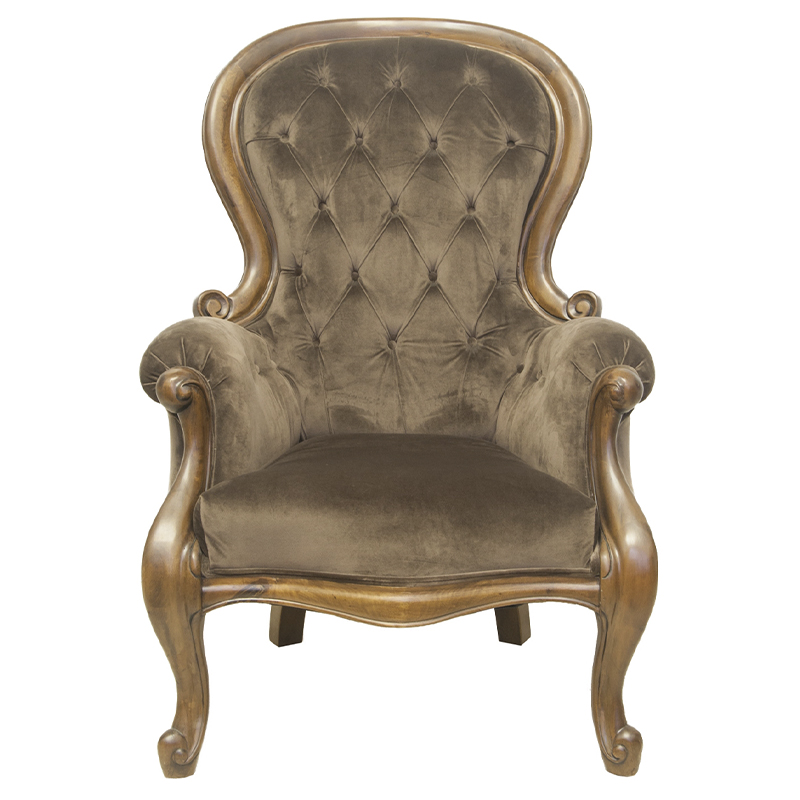 Кресло с мягкой обивкой из коричневого велюра на 4-х деревянных ножках Evelyn Classical Armchair