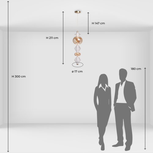 Подвесной светильник с вертикальной композицией из прозрачных и янтарных стеклянных шаров и ромбов Gabriel Scott Luna в Сочи