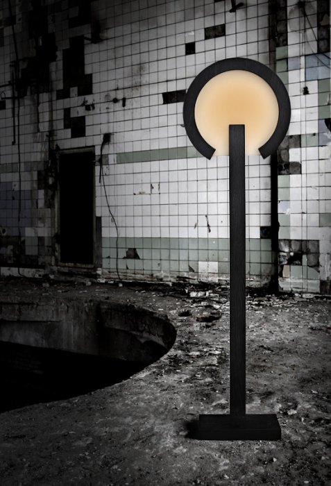 Напольный или настенный плоский торшер. Материалы — березовая фанера отделанная шпоном, лак. Многоцветная RGB светодиодная лампа. Низкое энергопотребление -10 ватт. Опция — пульт управления цветом. 4 место на SaloneSatellite Moscow 2010.